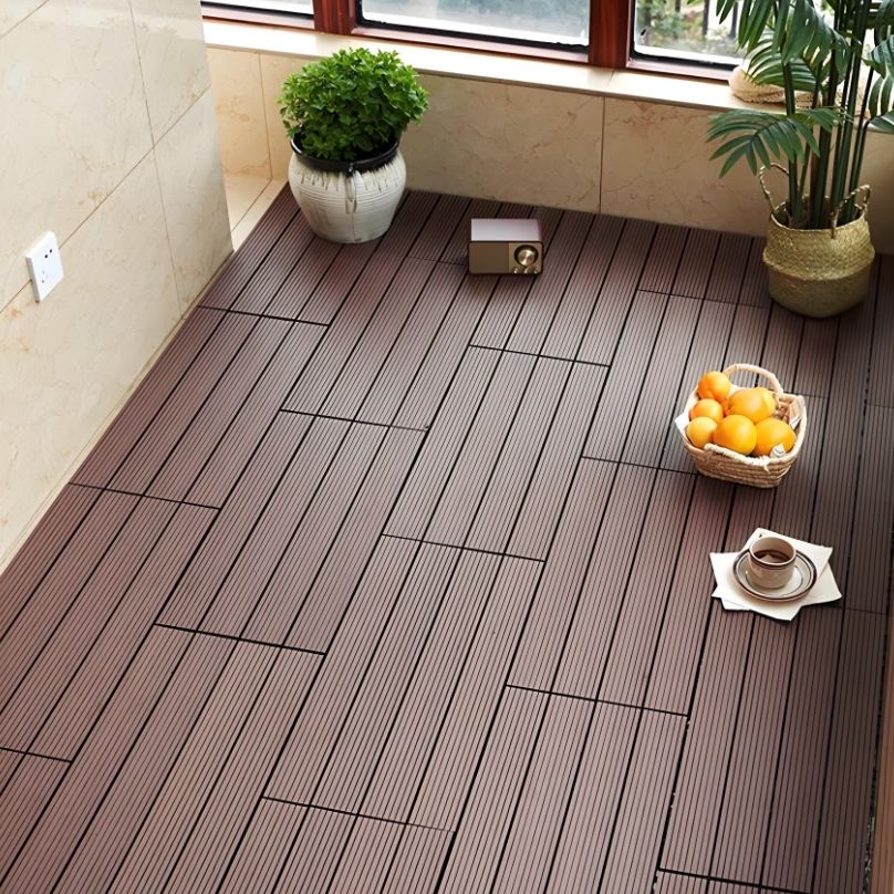 พื้นระเบียงไม้เทียมสีน้ำตาลเข้มแบบ Co-extrusion สำหรับกลางแจ้ง พื้นแข็งแรงทนทาน เหมาะสำหรับลานบ้าน