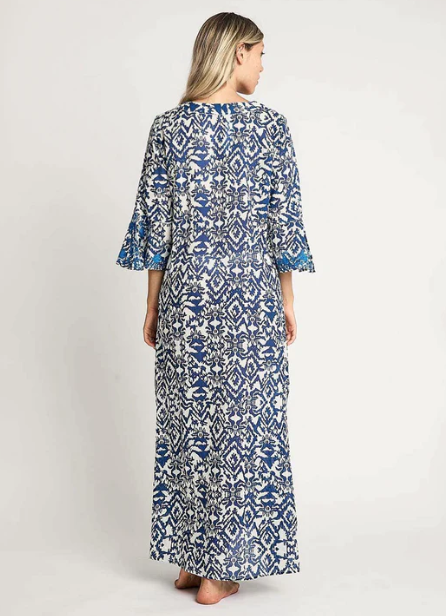 คอวีด้านหน้าลึกพิมพ์ดิจิตอลแขนยาวข้อเท้ายาวลําลองผู้หญิงพิมพ์ชุดชายหาดสวมใส่