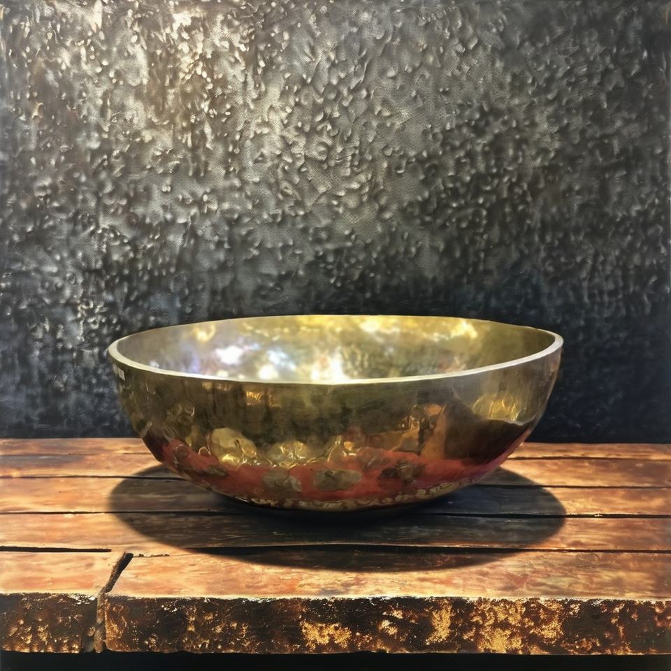 ขันทองเหลืองทิเบตสำหรับบำบัดด้วยเสียง ทำด้วยมือ ตัดขึ้นรูป พิมพ์ลายพระพุทธรูป สำหรับการทำสมาธิบำบัด