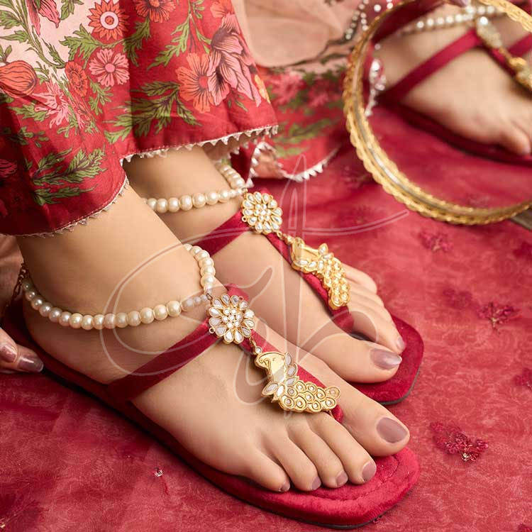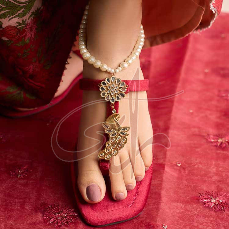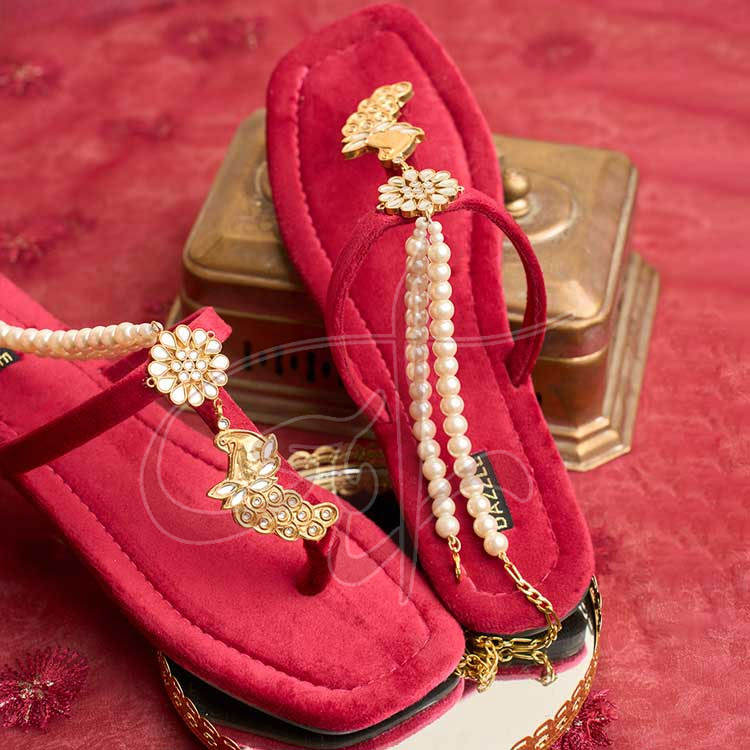รองเท้าแตะสายรัดข้อเท้าไข่มุกทำด้วยมือสีแดงเข้มเข้มป้องกันการลื่นพร้อมซับในกำมะหยี่ด้านบน