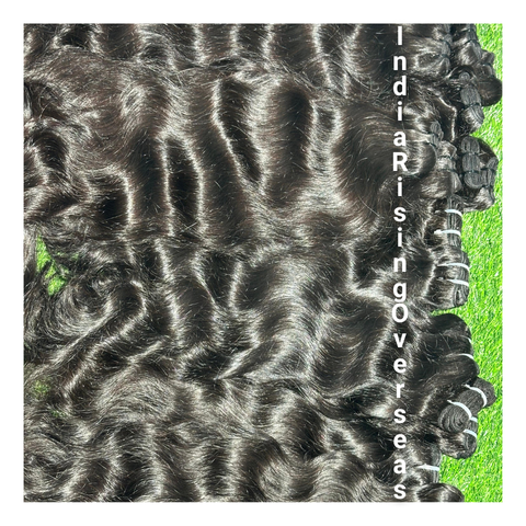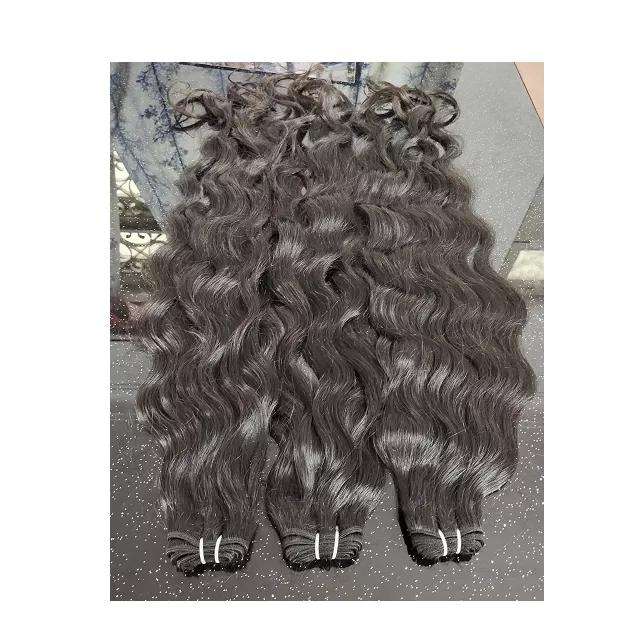 มัดผมธรรมชาติแบบลอนผมอินเดียบริสุทธิ์ยังไม่ผ่านกระบวนการผมปลายหนาปลายผมสำหรับวัดความเงางามแบบนุ่มขายส่ง