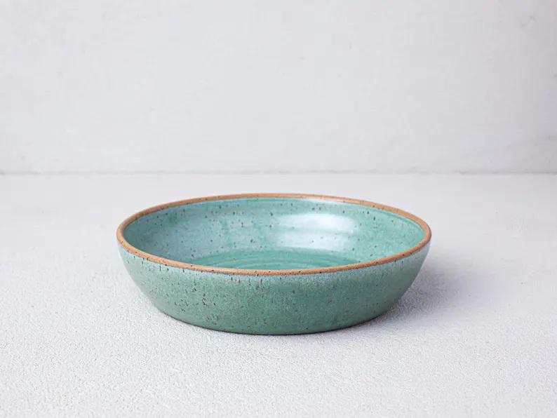 ชามเซรามิกเคลือบเงาแบบลึก ทรงเตี้ยกว้าง ผิวเรียบเนียน ทนทาน ปลอดภัยสำหรับอาหาร เหมาะสำหรับสลัด บะหมี่ และอาหารเรียกน้ำย่อย