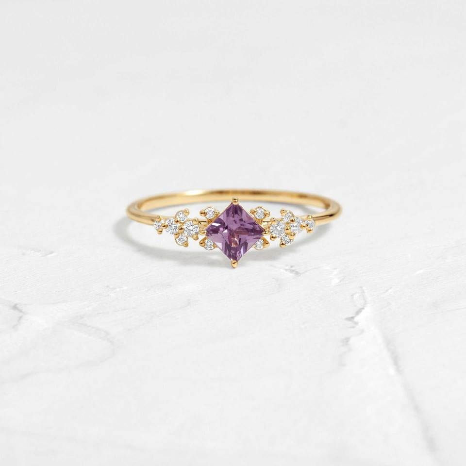 แหวนหมั้นเพชรแซฟไฟร์สีม่วงเข้มทองคำขาว เพชรเลี้ยงในห้องปฏิบัติการ ดีไซน์บางเฉียบ ของขวัญวันวาเลนไทน์สำหรับผู้หญิง เครื่องประดับหรูหรา