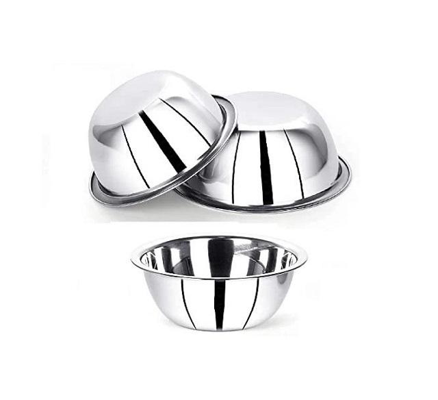 ชามสเตนเลสสตีลทรงกลมลึกพร้อมขอบโค้งที่ออกแบบมาสำหรับการผสมและการให้บริการฟรีหก