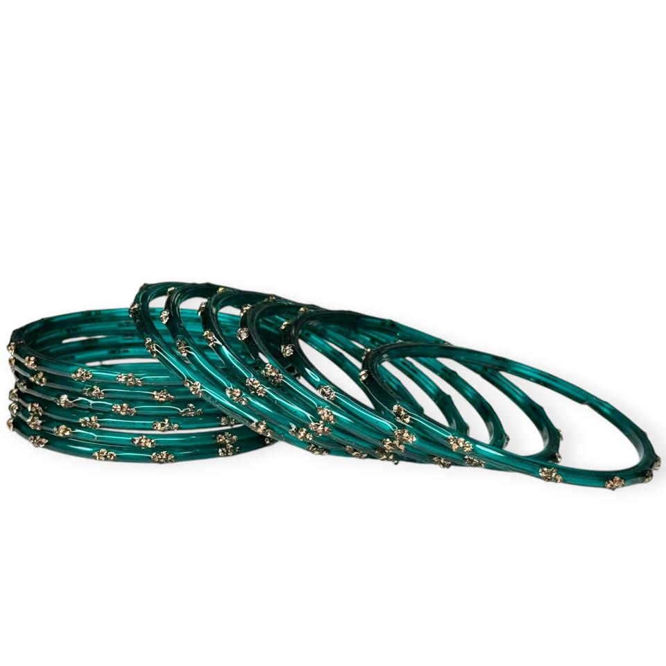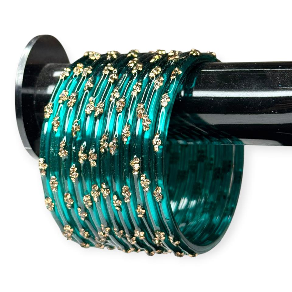 ชุดแคชมิริทำจากแก้วหยดน้ำสีมรกตสีน้ำเงินน้ำทะเลลึกพร้อมกำไลชุบทองสำหรับงานแต่งงานและงานรื่นเริง