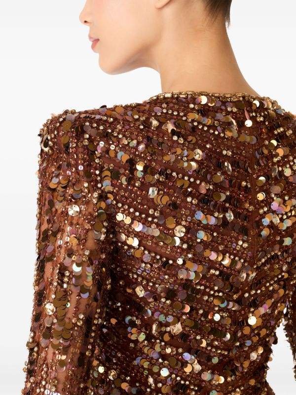 ชุดราตรีทรงเอไลน์สีน้ำตาล คอวีลึก ผ้าเครป แต่งเลื่อมระยิบระยับ แบบมีสายเดี่ยว พร้อมคุณสมบัติป้องกันไฟฟ้าสถิตและระบายอากาศ เหมาะสำหรับงานปาร์ตี้