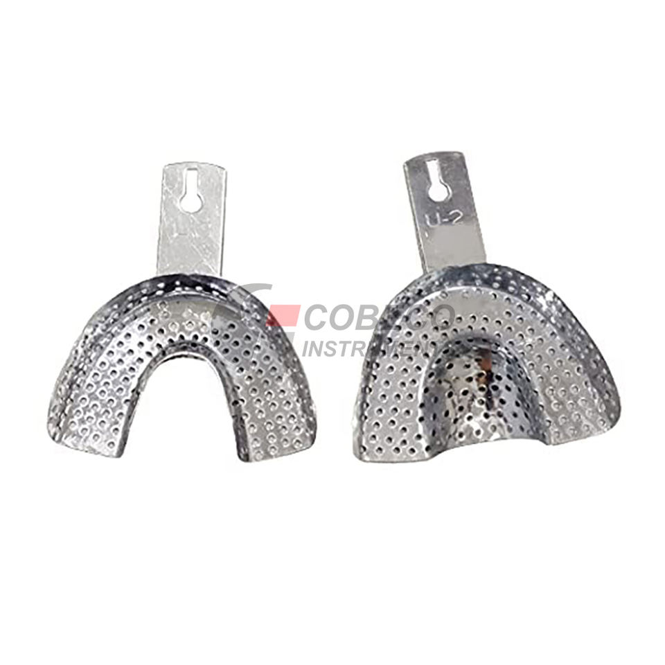 ถาดขยายช่องปากแบบลึก ดีไซน์แบบเจาะรูตามหลักกายวิภาค ทำจากสแตนเลส สำหรับการถ่ายแบบอัลจิเนตแบบละเอียดเต็มปาก
