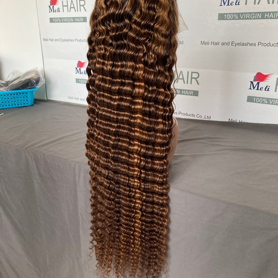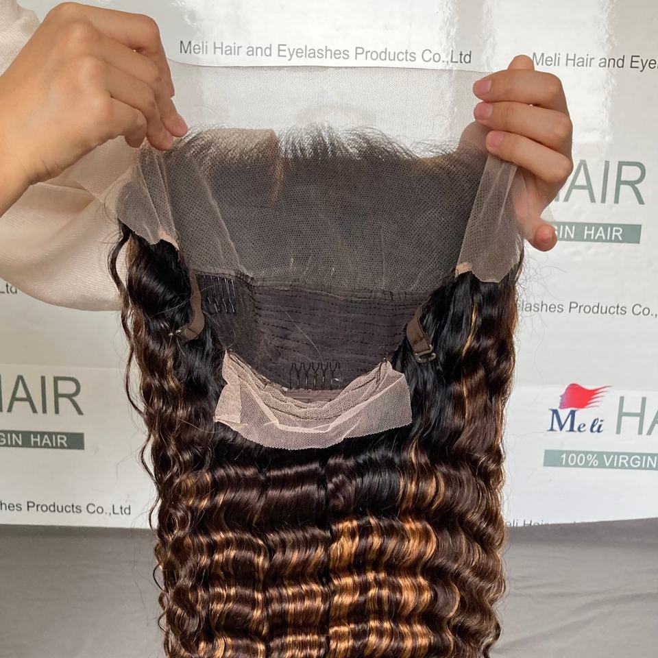 วิกผมลอนลึกแบบไฮไลท์สีออมเบร วิกผมแท้ ปมเล็ก วิกผมลูกไม้เนื้อนุ่ม คุณภาพสูง