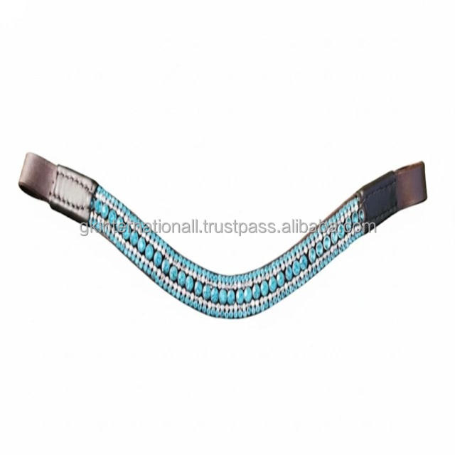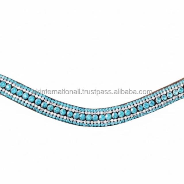 สายคาดหน้าผากม้าหนังพรีเมียมสีดำประดับคริสตัลสีน้ำเงินรูปทรงคลื่นลึกแบบเมกะบลิง ขนาดฟูลคอบ