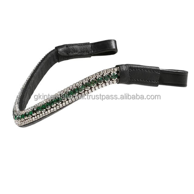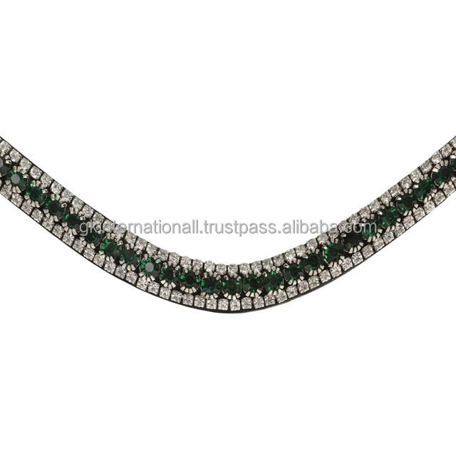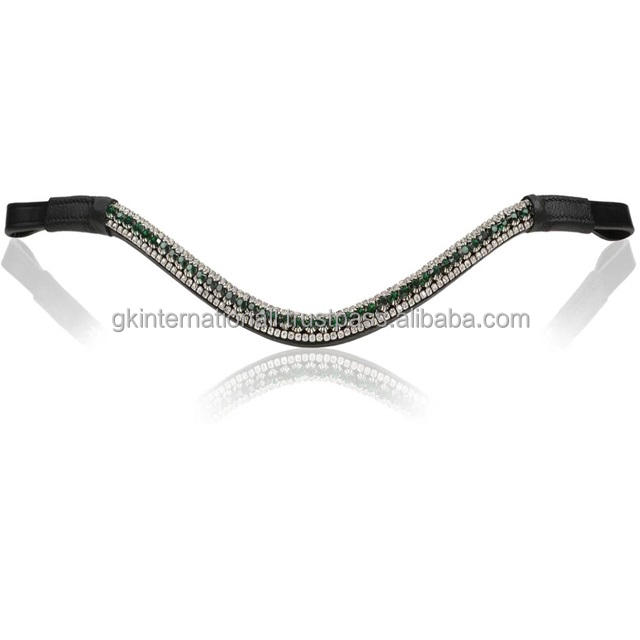 สายคาดคิ้วหนังแท้ประดับคริสตัลสีเขียวเข้มประดับเพชรแวววาวรูปทรงคลื่นลึก