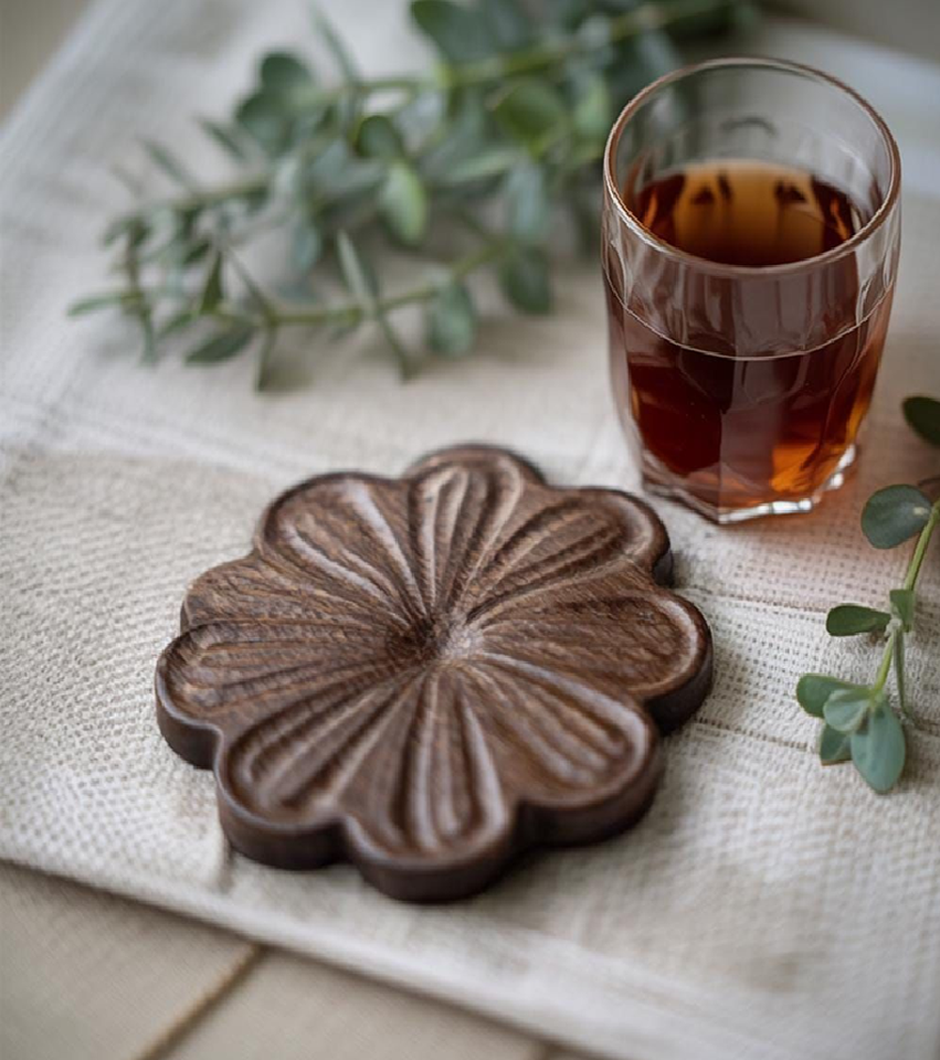 แผ่นรองแก้วไม้สำหรับเครื่องดื่มร้อนและเย็น