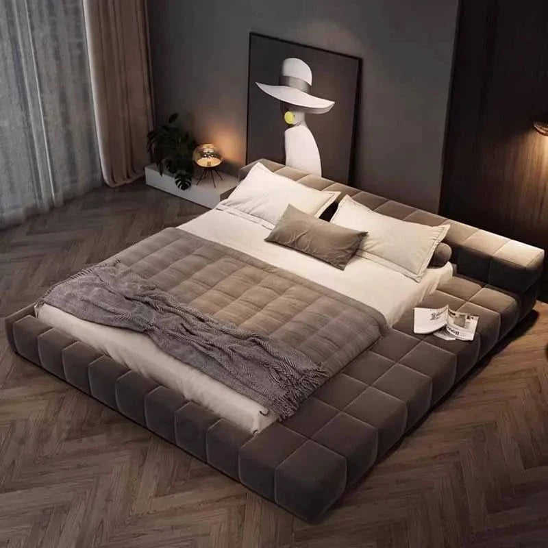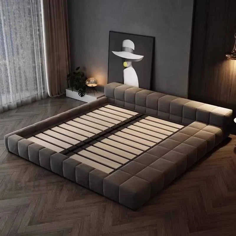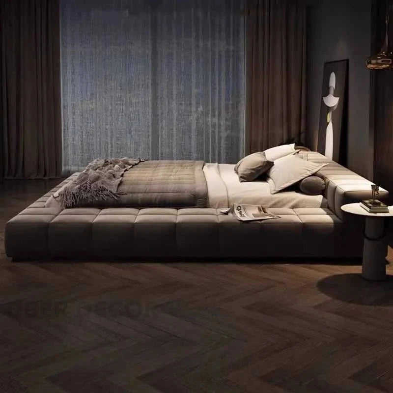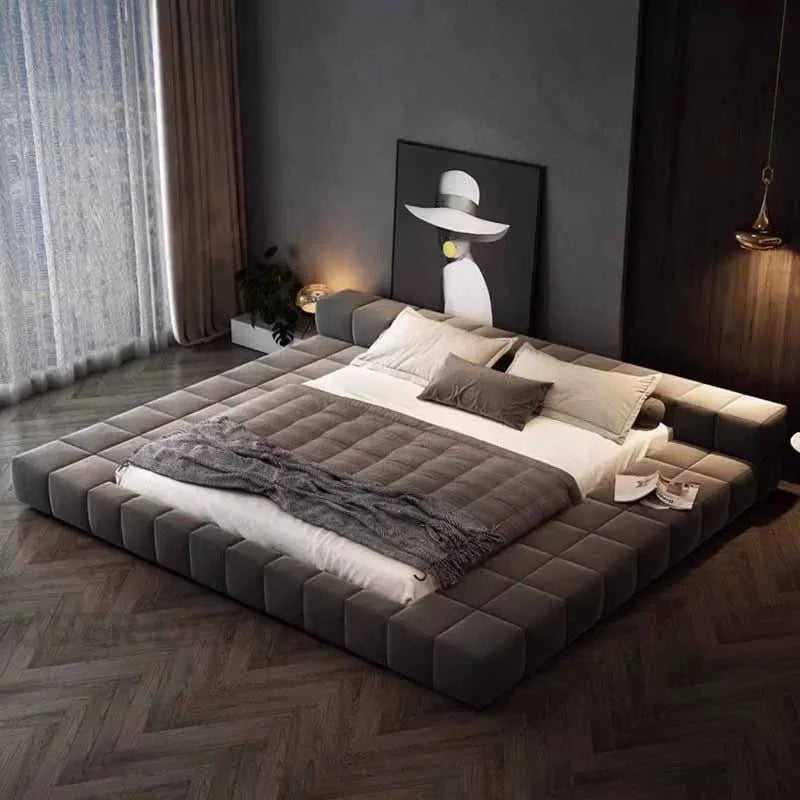 เตียงแพลตฟอร์มลายตารางสไตล์เลานจ์แบบโมเดิร์นอย่างล้ำลึก