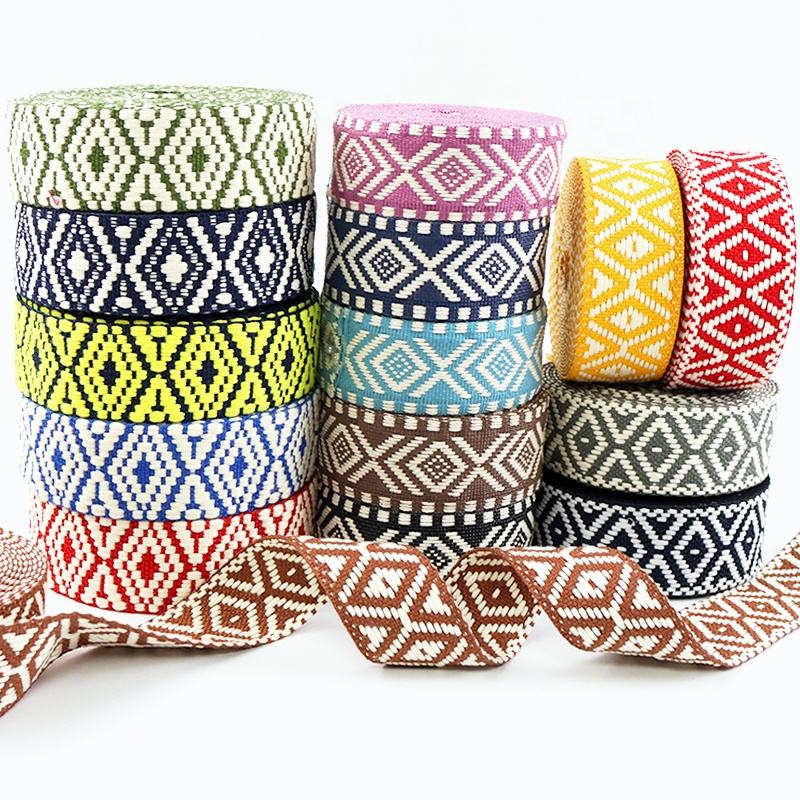 ริบบิ้นผ้าแจ็คการ์ดหลากสี1.5นิ้วสายรัดโพลีเอสเตอร์สองด้านสำหรับสายกระเป๋าและงานฝีมือ