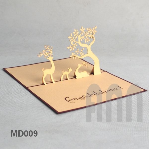 การ์ดอวยพรแบบกระดาษป๊อปอัพสำหรับครอบครัวกวาง3D ทำด้วยมือลายเวียดนามเคลือบเงาวันวาเลนไทน์วันแม่วันพ่อ