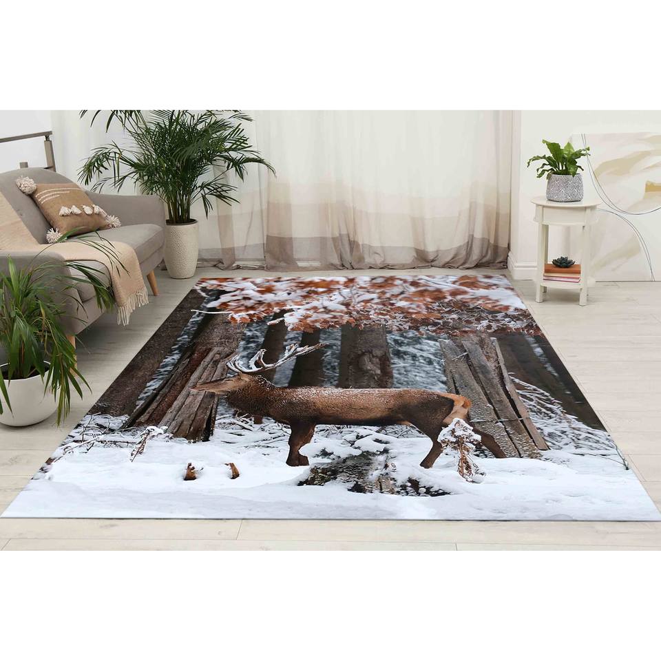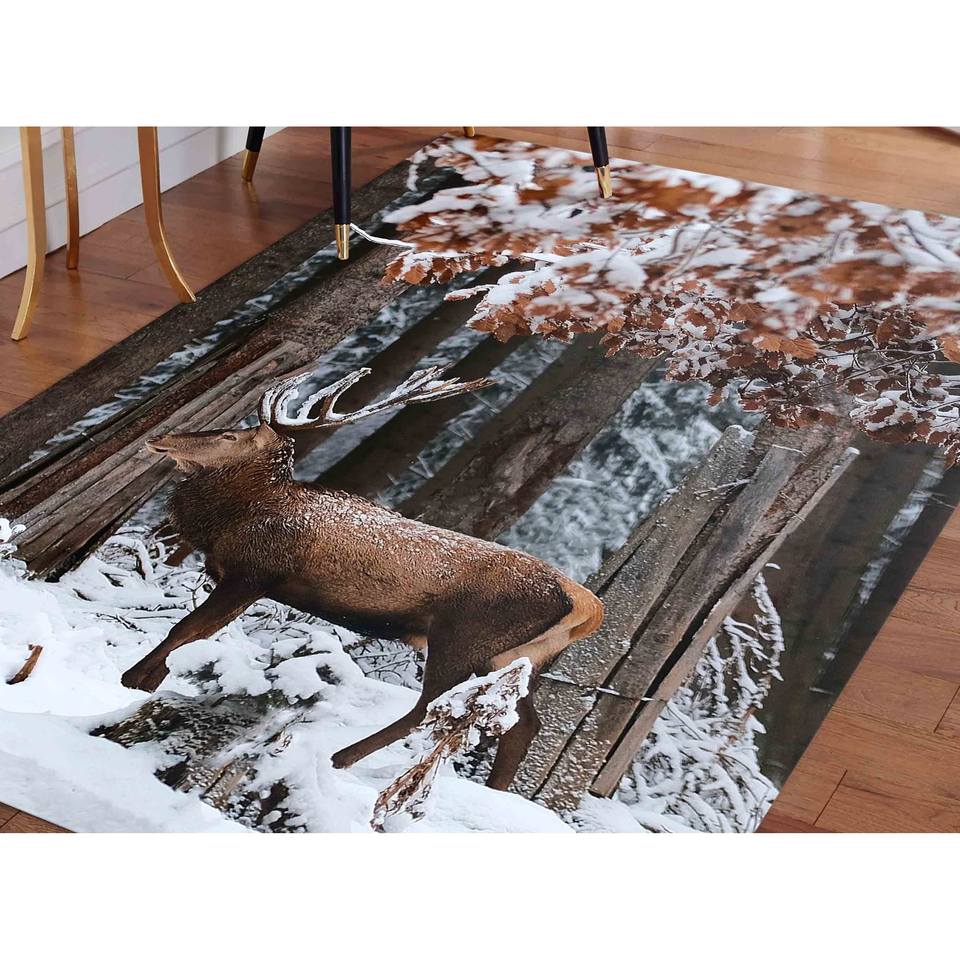 พรมลายกวาง: ลายสัตว์ป่าฤดูหนาว พรมกันลื่นสไตล์บ้านไร่ พรมเชนิลล์