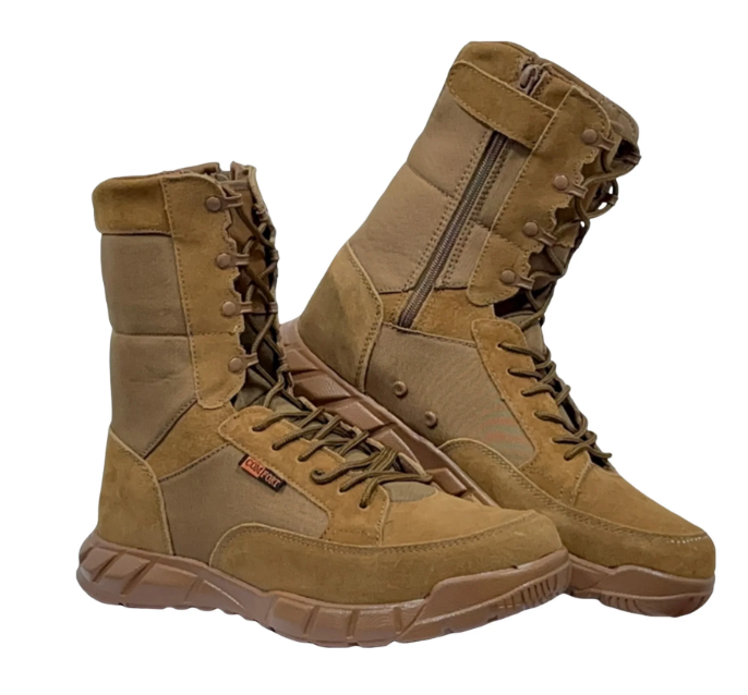 รองเท้าบูทคอมแบทหนังวัวแท้รุ่น TSB01 น้ำหนักเบาพิเศษ พร้อมซิปด้านข้าง สีโคโยตี้บราวน์และสีดำ