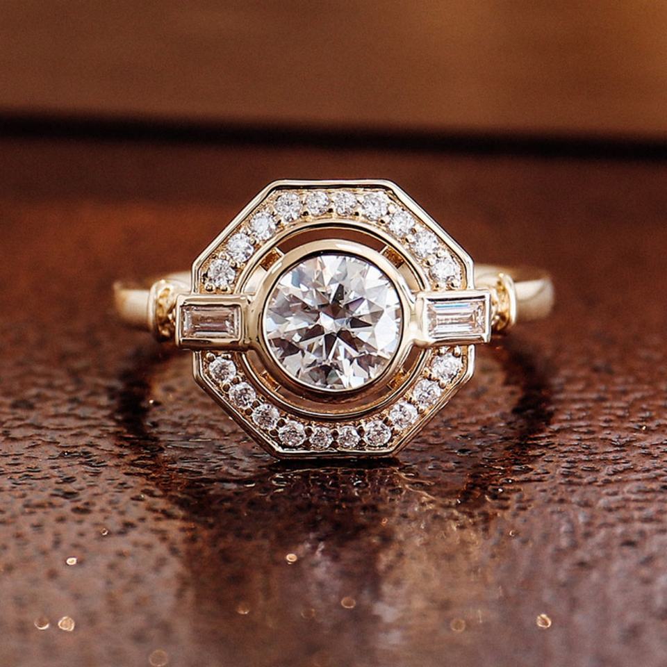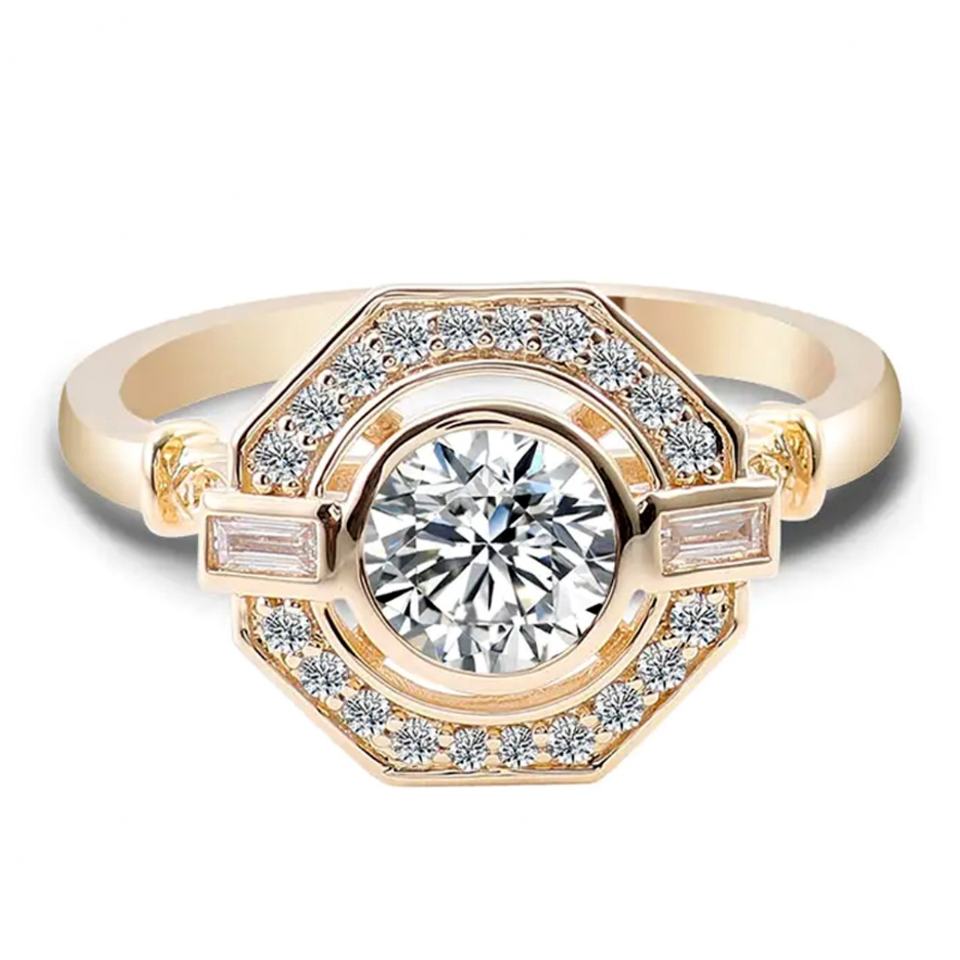 แหวนทองคำเหลืองทรงแปดเหลี่ยม 10k 14k 18k ดีไซน์ประณีต แหวนเพชรโมอิสซาไนต์ VVS สำหรับผู้หญิงและผู้ชาย ของขวัญเครื่องประดับ