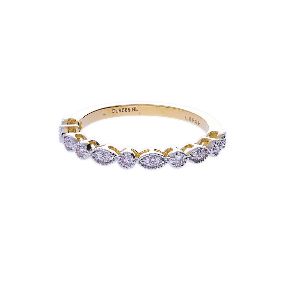 แหวนทองคำ14K ที่ละเอียดอ่อนพร้อมการผสมผสานกันและกลมประดับเพชรธรรมชาติในดีไซน์ที่ได้แรงบันดาลใจจากสไตล์วินเทจ