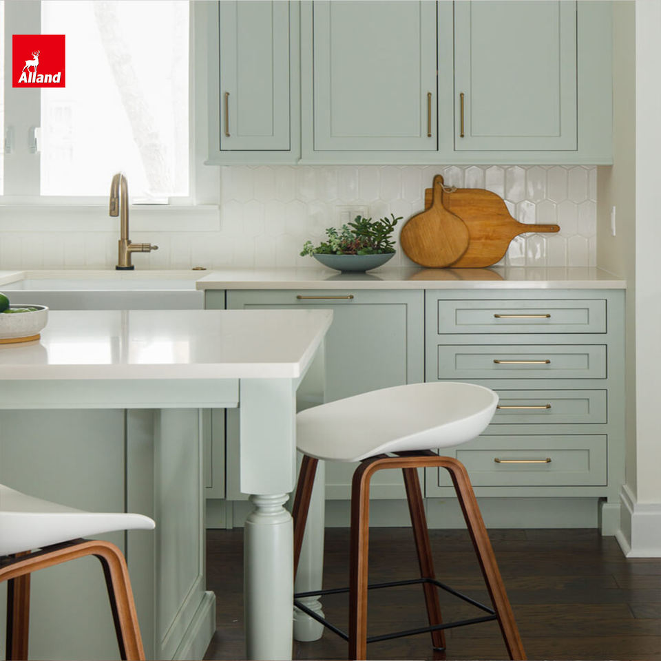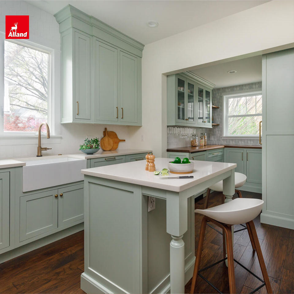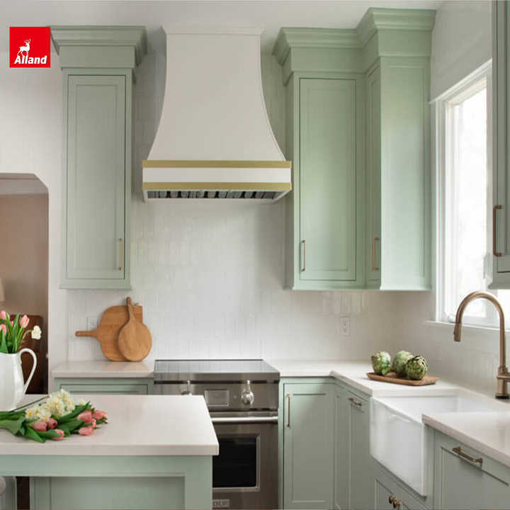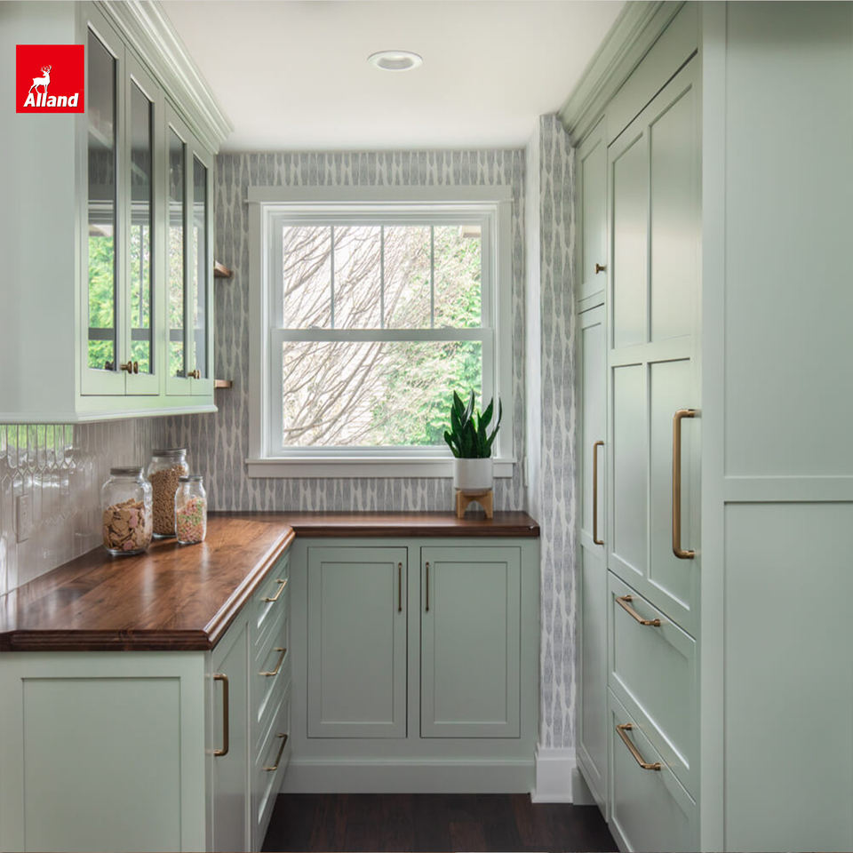 ตู้ครัวขนาดเล็กสีเขียวสั่งทำพิเศษพร้อมประตูแบบฝัง