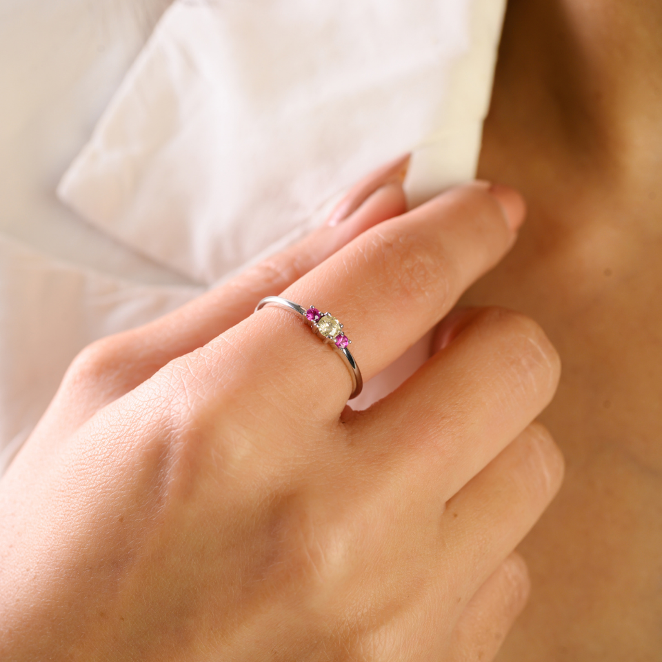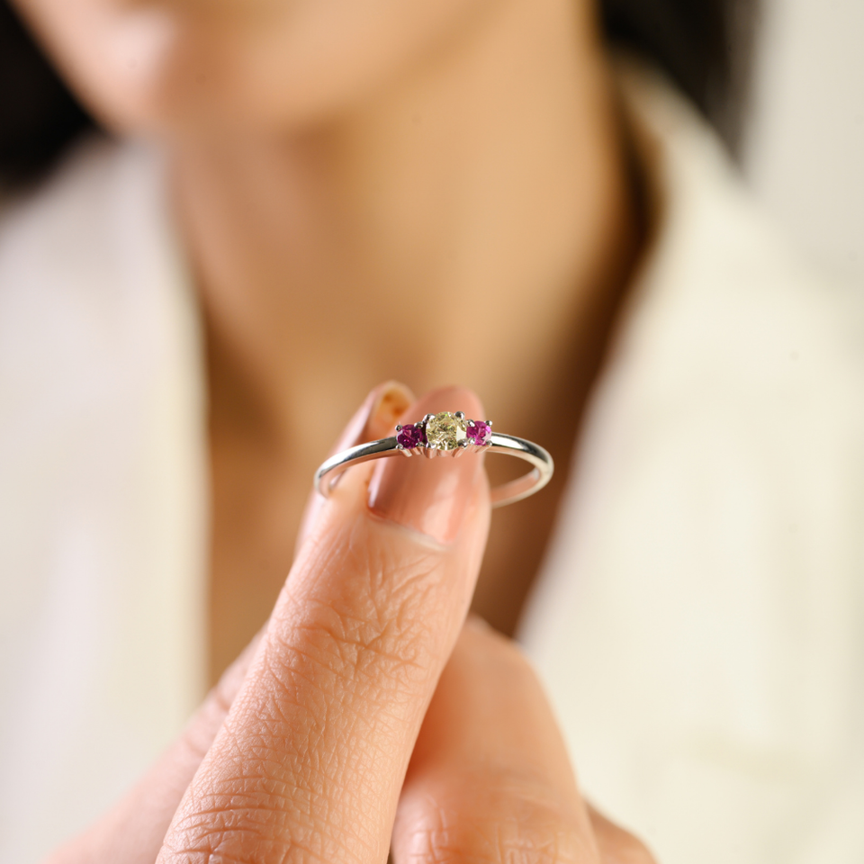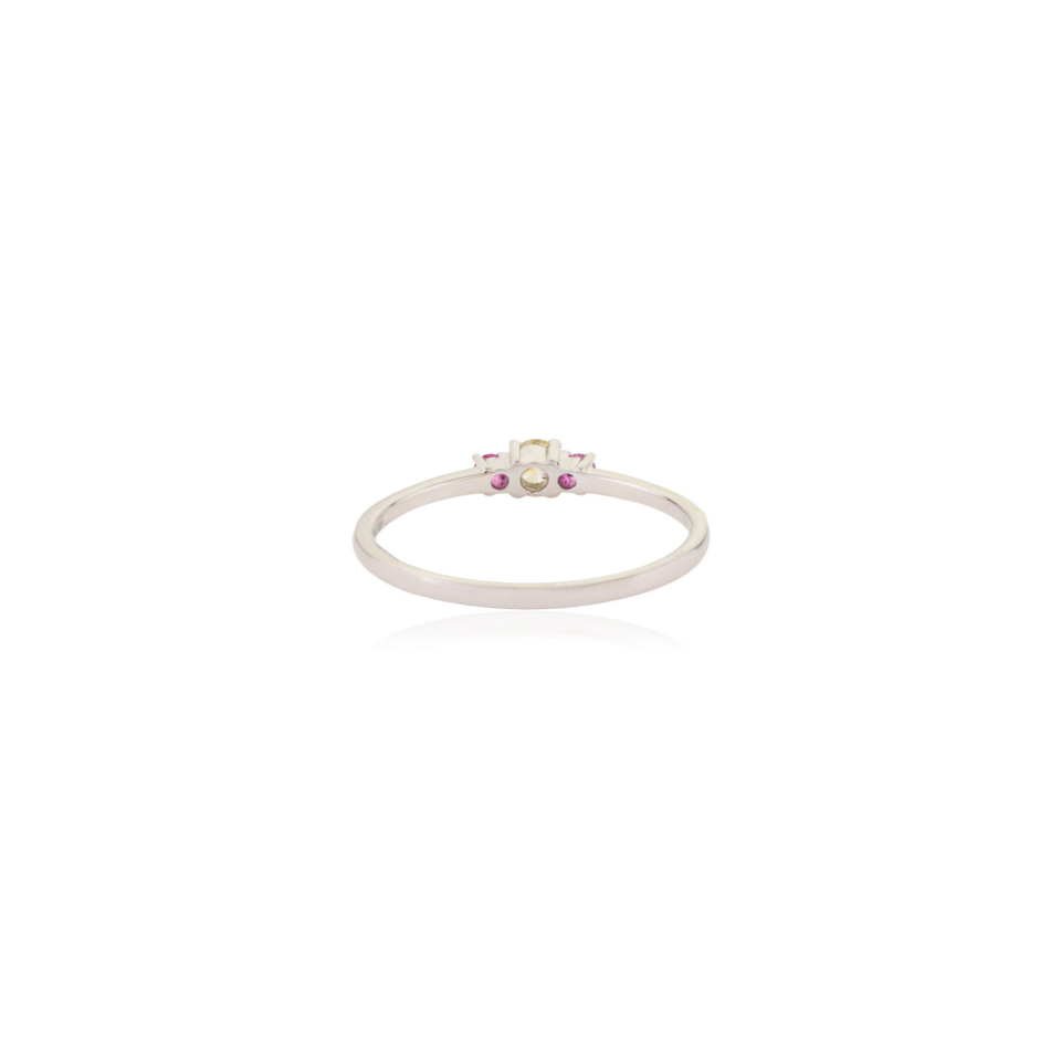 สินค้าขายดี แหวนทองคำขาวแท้ 14K ประดับทับทิมและเพชรเหลือง ดีไซน์เรียบหรู เหมาะสำหรับสวมใส่ทุกวัน สำหรับผู้หญิง
