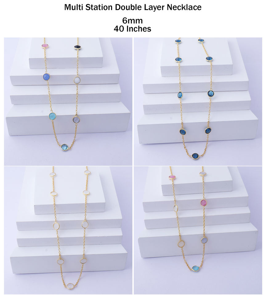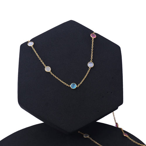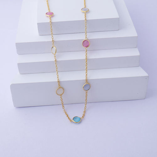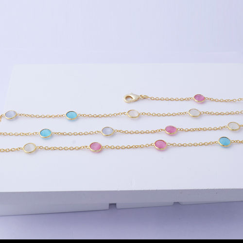 สร้อยคอโซ่สองชั้นทรงตาแมวทรงกลมหลากสีละเอียดอ่อนเครื่องประดับสายโซ่ชุบทอง