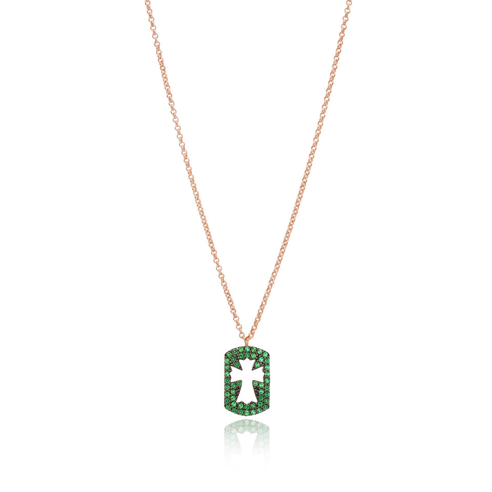 Delicate Emerald Zircon Stone Cross Design Pendant Turkish Wholesale Handmade 925 Sterling Silver Jewelry