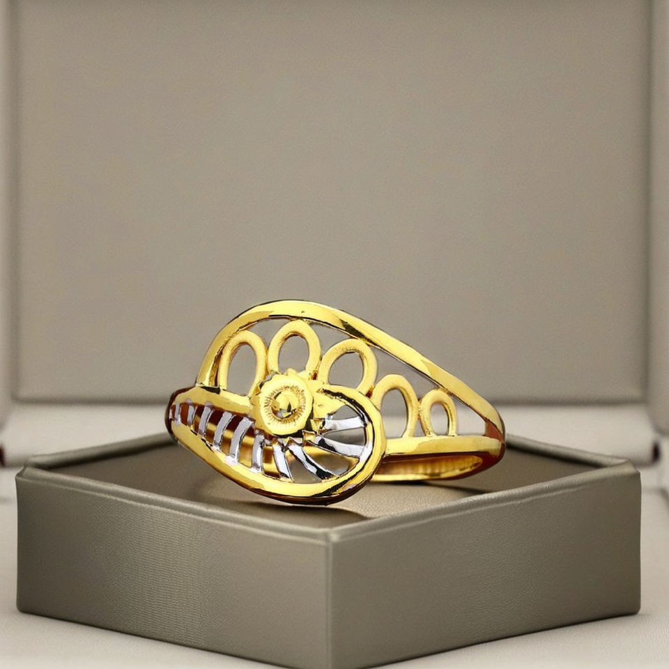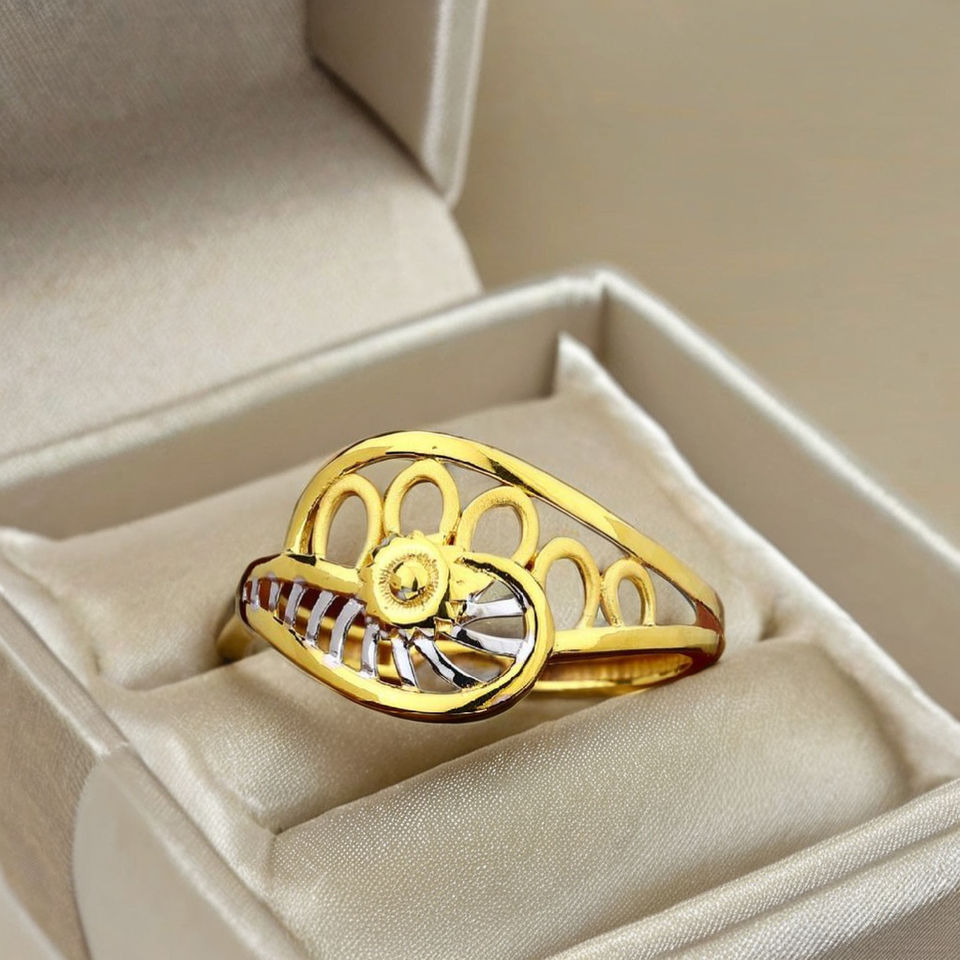 แหวนทองลายดอกไม้ละเอียดอ่อน | เครื่องประดับดอกไม้สองสีสำหรับผู้หญิง | เครื่องประดับน้ำหนักเบา 1.930 กรัม