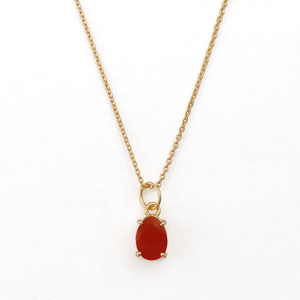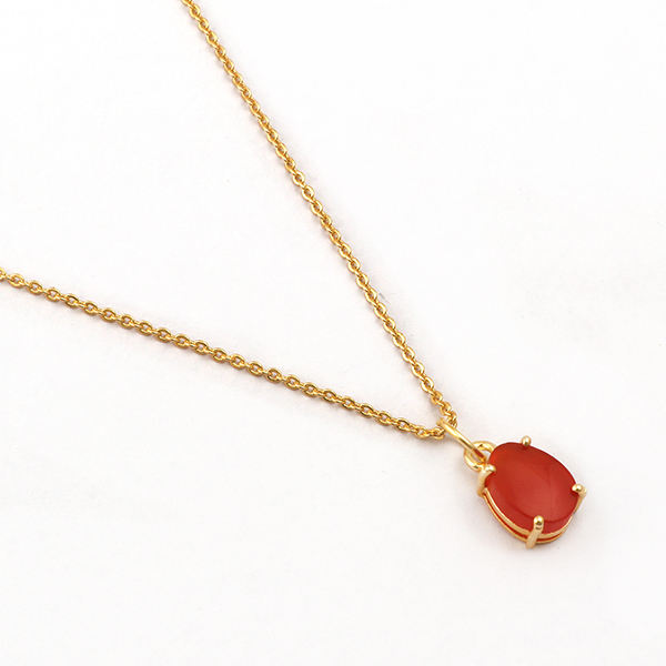 Delicate Gemstone Necklace Natural Red Onyx Pendant Solid Brass 18k Gold Plated Party Wear Link Chain Necklace Handmade Jewelry