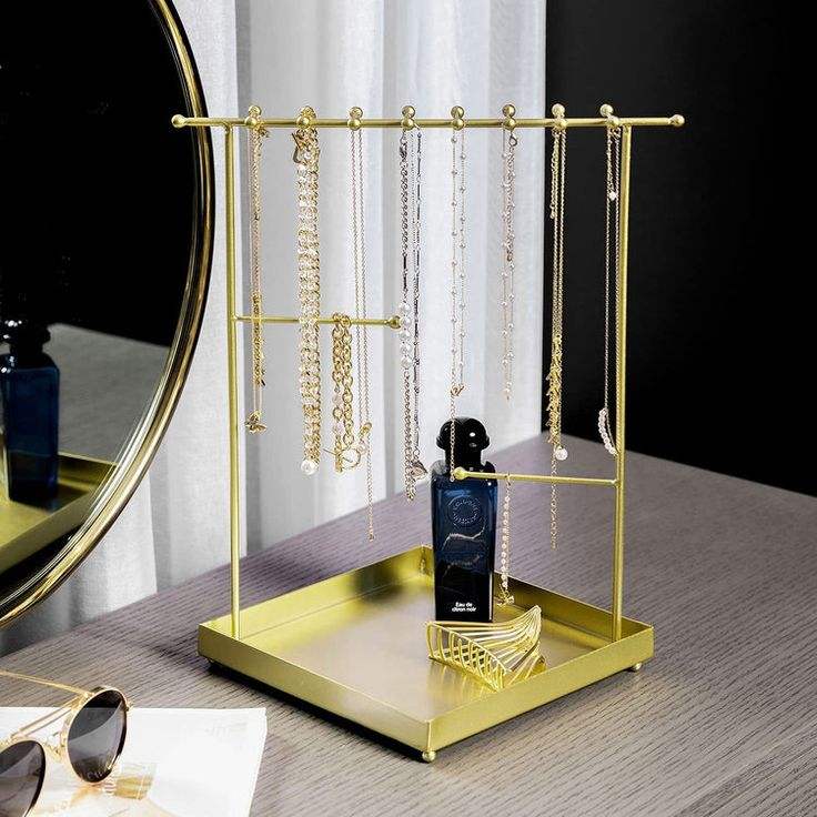 เครื่องประดับโลหะที่ละเอียดอ่อนยืนด้วยหลายระดับสำหรับการจัดระเบียบสร้อยคอสร้อยข้อมือแหวนและต่างหูที่สวยงาม