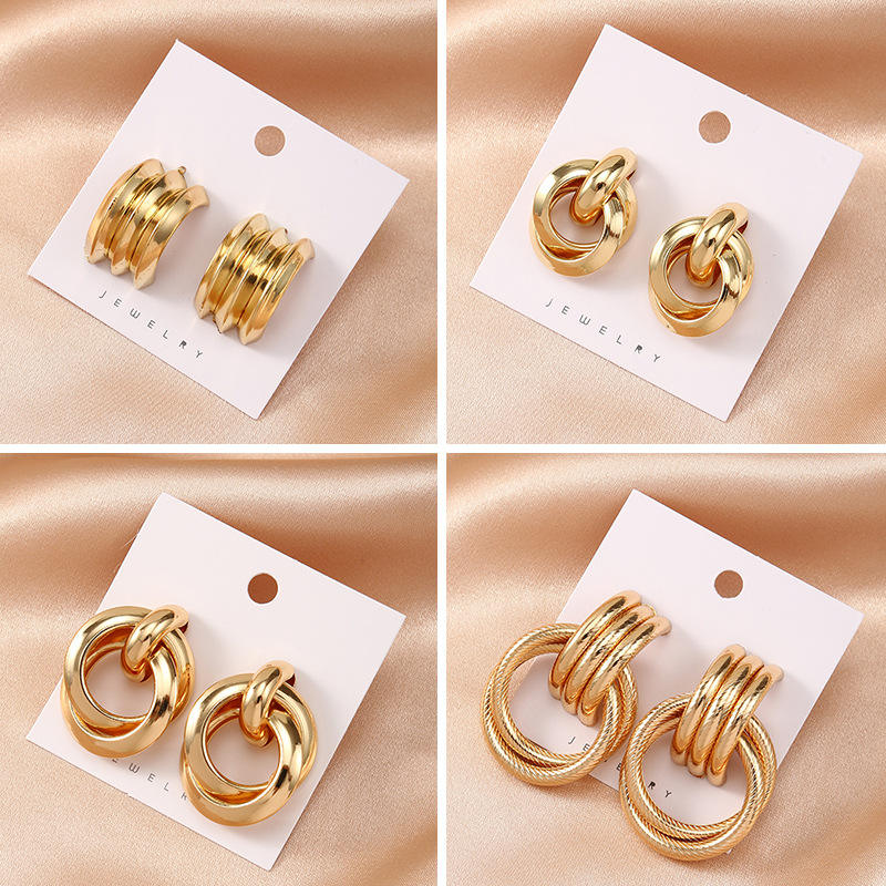 ต่างหูแบบห้อยทำจากโลหะรูปทรงเรขาคณิตหลายชั้นชุบด้วยทองคำหนาแบบใหม่สำหรับผู้หญิงของขวัญต่างหูห่วงแฟชั่นทันสมัย