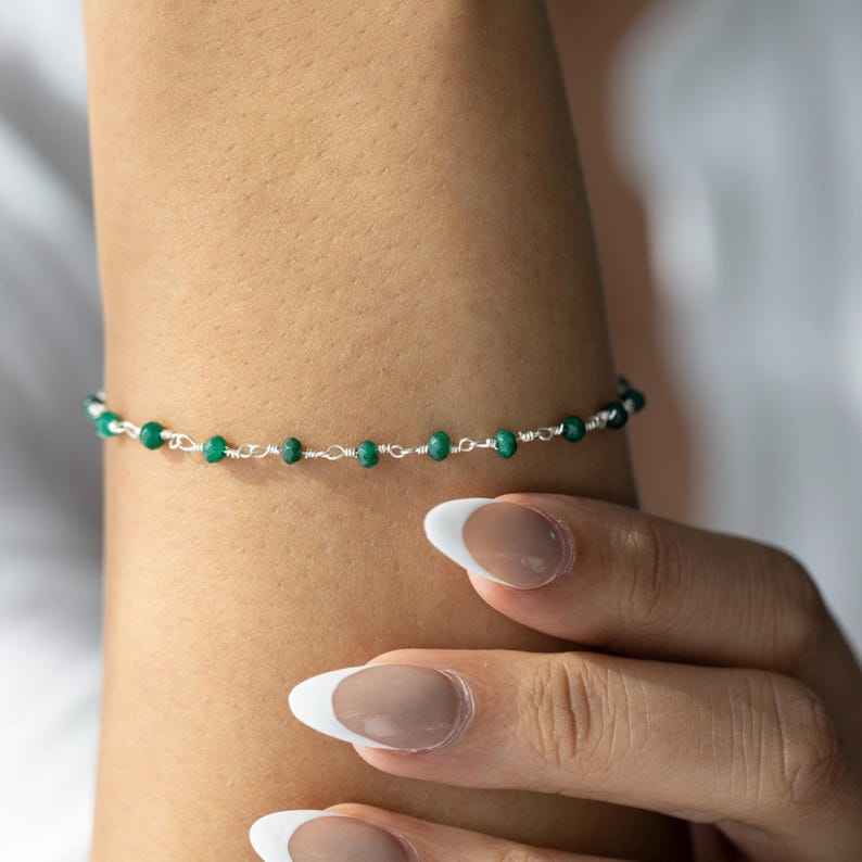 สร้อยข้อมือลูกปัดมรกตดิบ