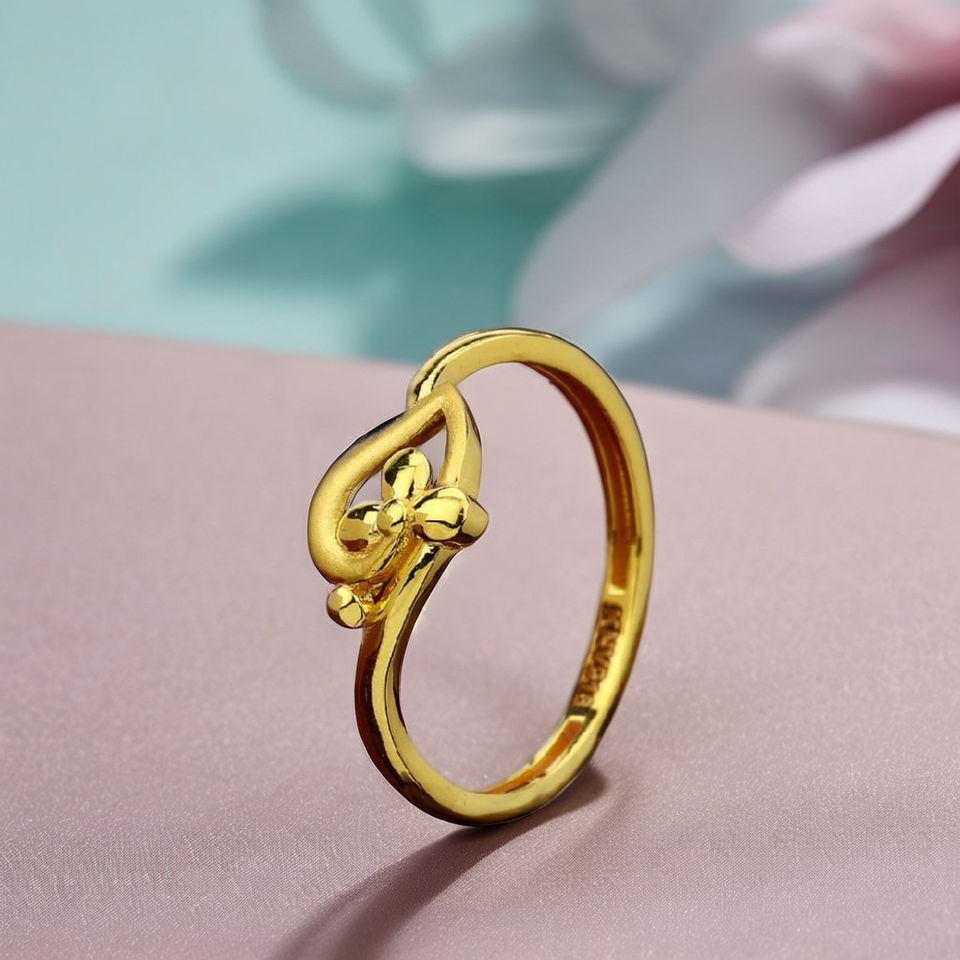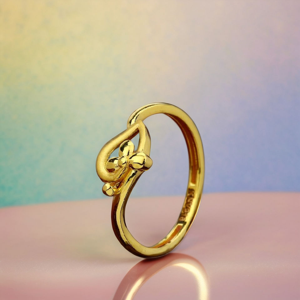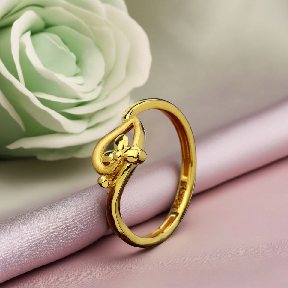 แหวนทองคำรูปดอกไม้เดี่ยวอันละเอียดอ่อน | ดีไซน์ลายวนสุดหรูสำหรับเด็กผู้หญิง | เครื่องประดับปาร์ตี้น้ำหนักเบา 1.880 กรัม
