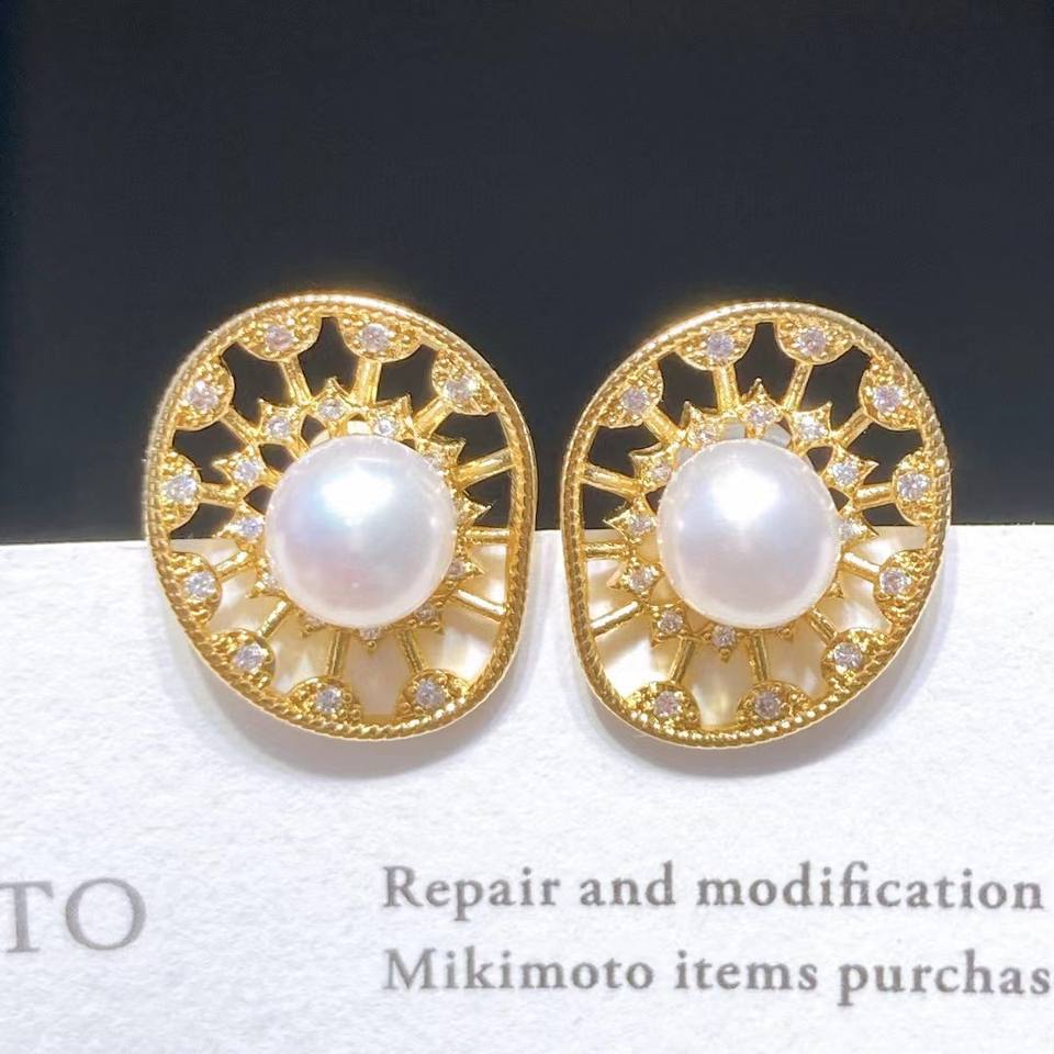 ต่างหูมุกน้ำจืดที่ละเอียดอ่อนและหรูหรา 8-9 มม. ลูกปัดใบบัวมันโถวเครื่องประดับที่สวยงาม