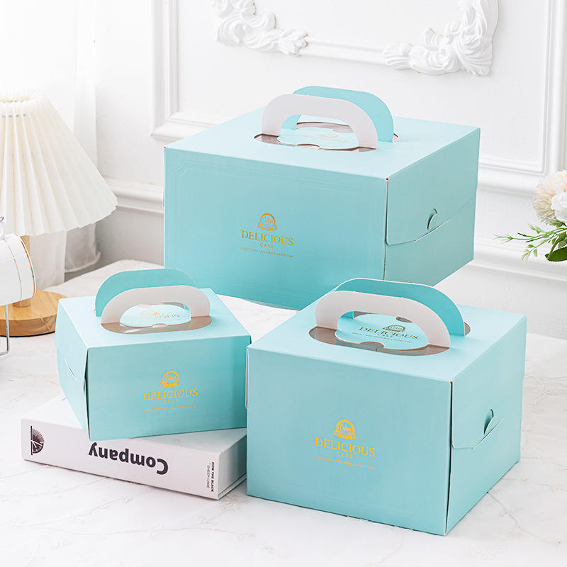 กล่องเค้กสี่เหลี่ยมลายนูนสวยงาม เป็นมิตรกับสิ่งแวดล้อม พร้อมหน้าต่าง สำหรับใส่เค้กมูส เค้กชิฟฟอน เค้กเนย