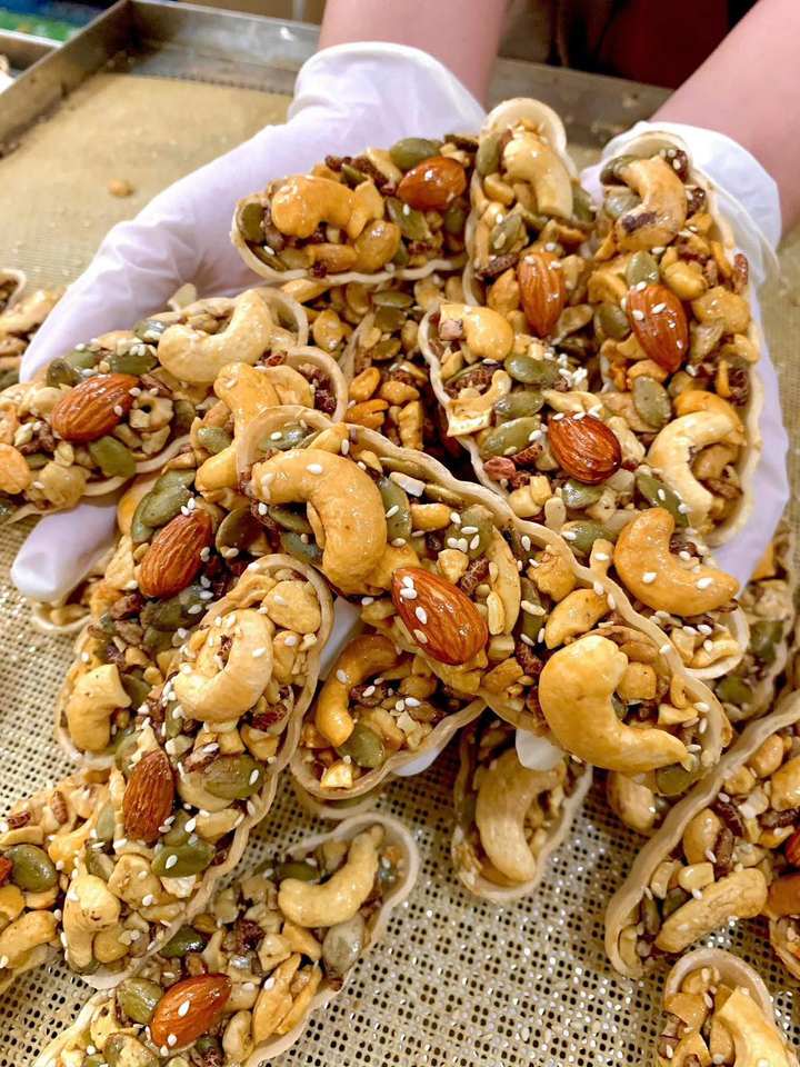 ส่วนผสม:เม็ดมะม่วงหิมพานต์, อัลมอนด์, บวบ, ข้าวกล้อง, น้ำผึ้ง,...