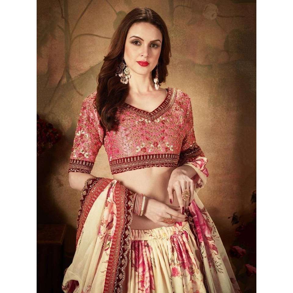 เสื้อและเสื้อเชิ้ตผ้าโปร่งสำหรับผู้หญิงพิมพ์ลายดอกไม้สีเบจ-พีช
