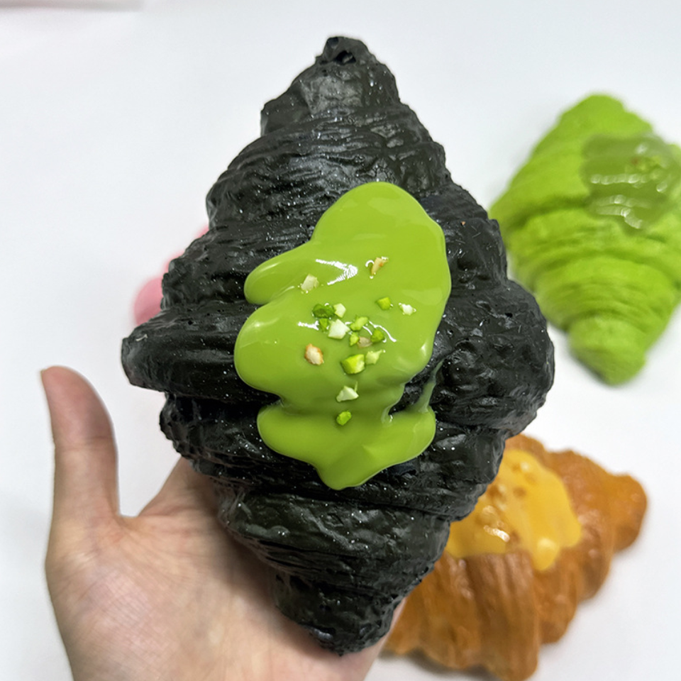 ของเล่นบีบแก้เครียดรูปขนมปังครัวซองต์ ทำจากซิลิโคนอย่างดี กลิ่นหอม นุ่มนิ่ม ยืดหยุ่น คืนรูปช้า เหมาะสำหรับเด็กชายและเด็กหญิง