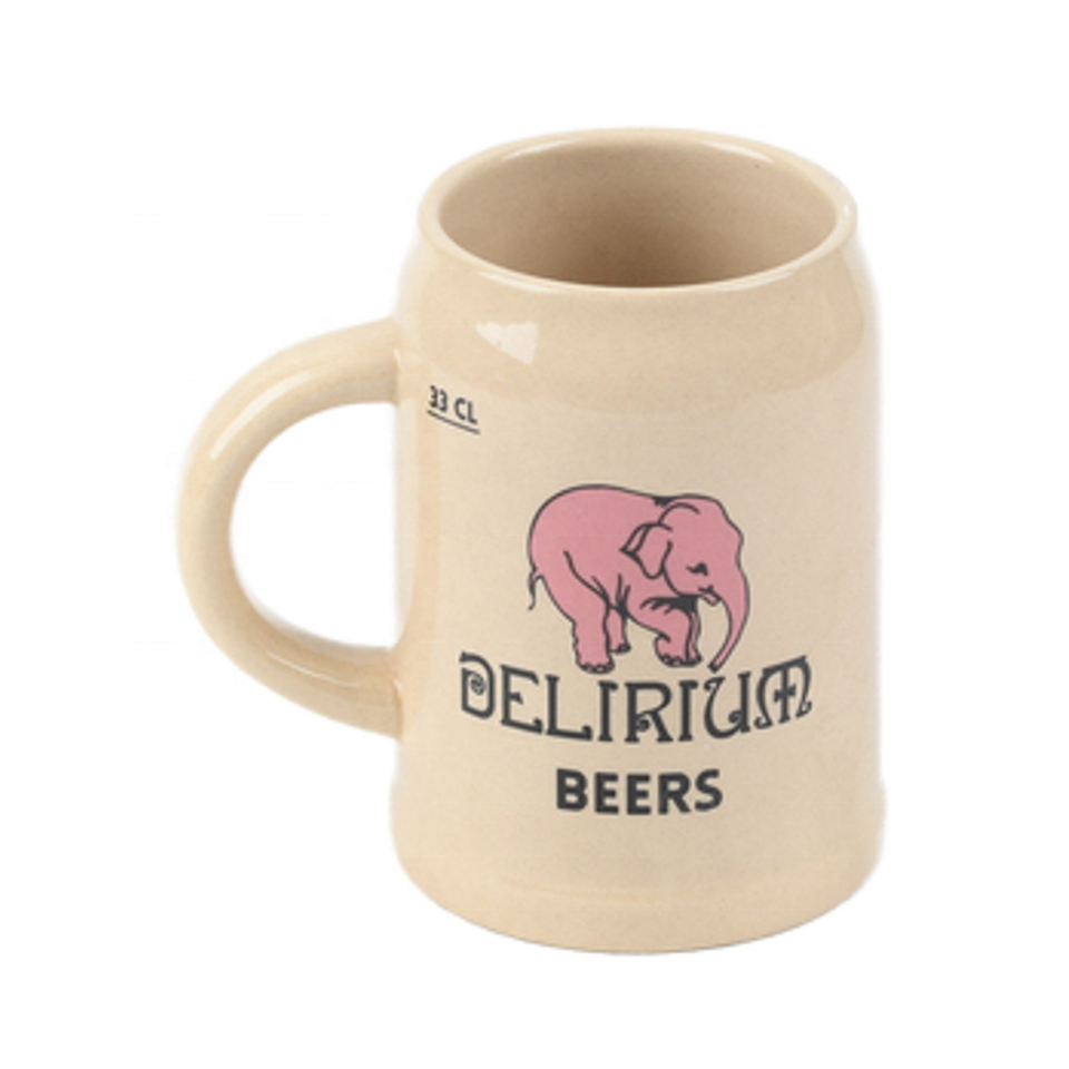 แก้วเบียร์เซรามิก Delirium Beers ลายช้างสีชมพู ขนาด 0.5 ลิตร สไตล์เยอรมัน พร้อมโลโก้สั่งทำ สำหรับงานปาร์ตี้ที่บาร์