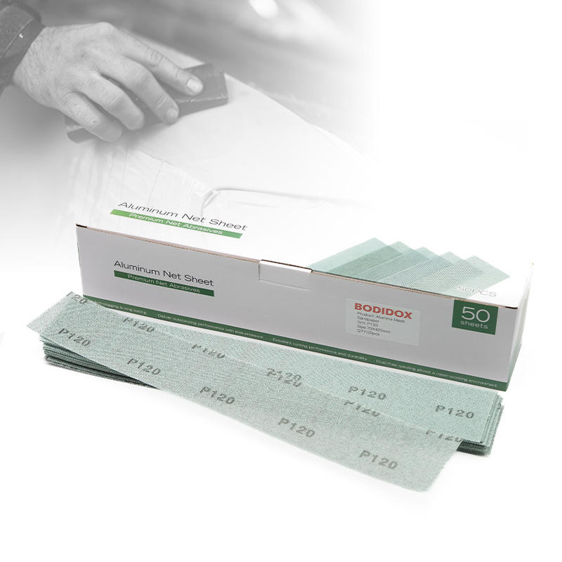 แผ่นกระดาษทราย P80-P240ตาข่ายอลูมินาขนาด70*420มม. ใช้แรงกดน้อยกว่า