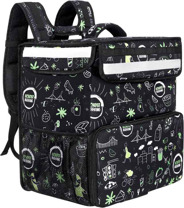 กระเป๋าส่งอาหารแบบมีฉนวนกันความร้อนของ Deliveroo กระเป๋าเป้สะพายหลังสำหรับส่งพิซซ่า กล่องใส่อาหารแบบนุ่มพร้อมขาตั้งพลาสติก