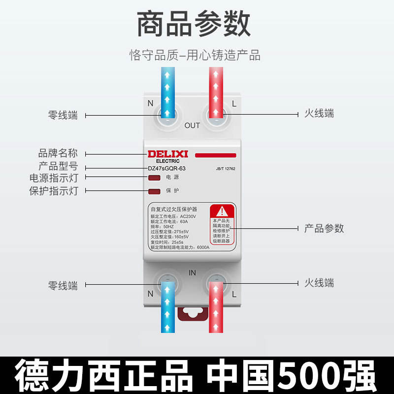 Delixi 3P + N ตัวป้องกันแรงดันไฟฟ้าเกิน/ต่ำกว่า380V ชนิดรีเซ็ตตัวเอง DZ47sGQR 40A 63A สามเฟส4P เอาต์พุตด้านล่างอินพุตด้านล่าง