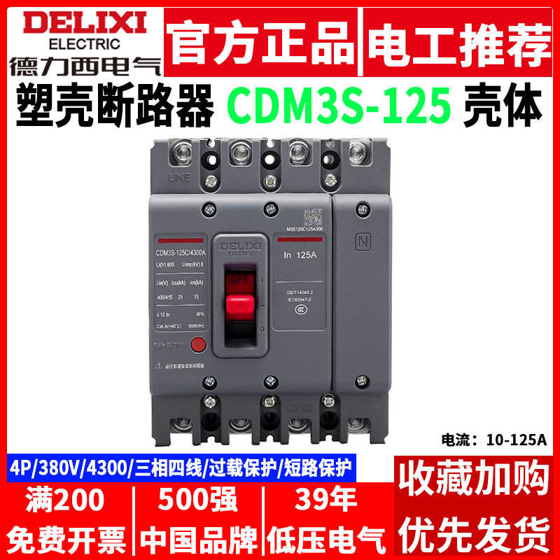 Delixi CDM3S-125C/4300 100A/125A Three-Phase Four-Wire 4P Air Circuit Breakers"