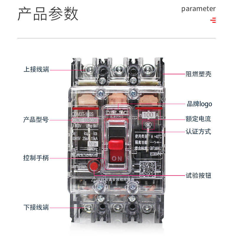 เบรกเกอร์ Delixi CDM3T-100S/3300 63A80A100A แบบใส 3P สวิตช์อากาศ ชนิดความร้อนและแม่เหล็ก แบบหล่อขึ้นรูป