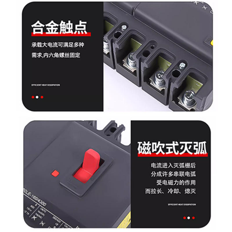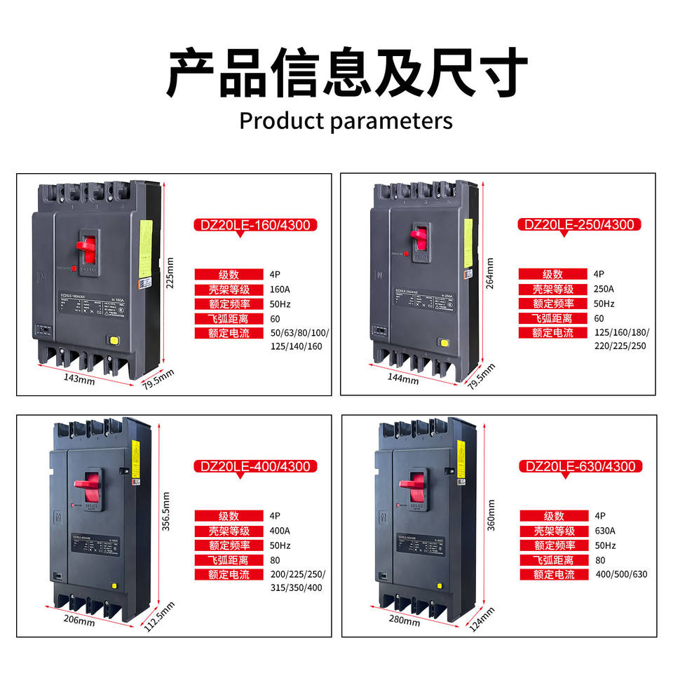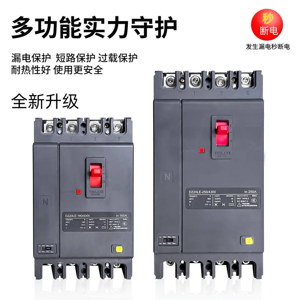 Delixi เบรกเกอร์ลม400A DZ20L-400/4300 350A พร้อมอุปกรณ์ป้องกันกระแสไฟตกค้าง4P