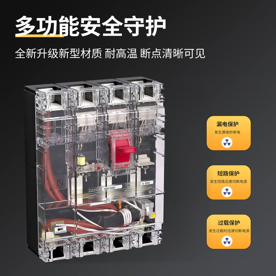 Delixi DZ20L-630T/4300 630A โปร่งใสกระแสไฟฟ้าที่เหลือเบรกเกอร์ (4P)