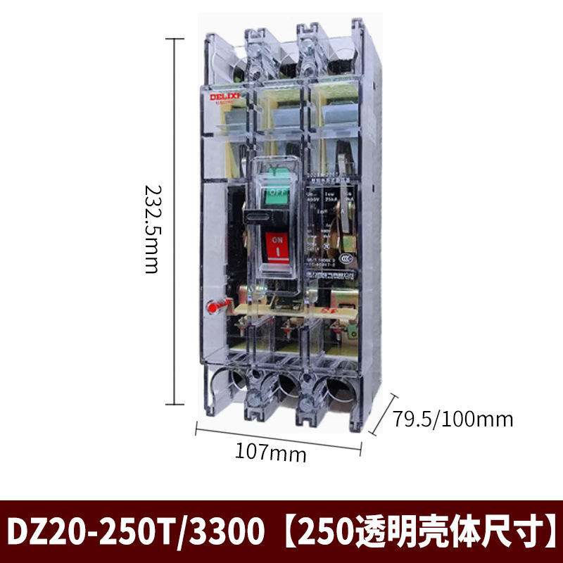 เบรกเกอร์แบบกล่องหล่อ Delixi DZ20Y-250T/3300 แบบใส ความจุสูง (225A/200A/160A/125A สามเฟส 3P)