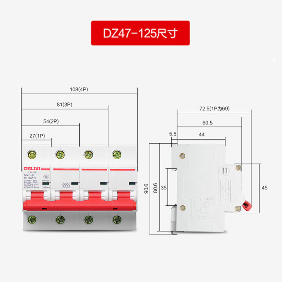 Delixi เบรกเกอร์วงจรอากาศสี่เสา125A ใช้ในครัวเรือน DZ47เครื่องตัดวงจรอากาศแบบ100A เฟสเดียวสามเฟส1P 2P 3P 4P ราง DIN Li
