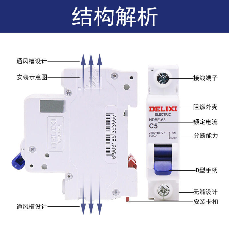 Delixi เบรกเกอร์วงจรแบตเตอร์220V, เบรคเกอร์เฟสเดียว1P 2P ขนาดเล็ก3P 4P