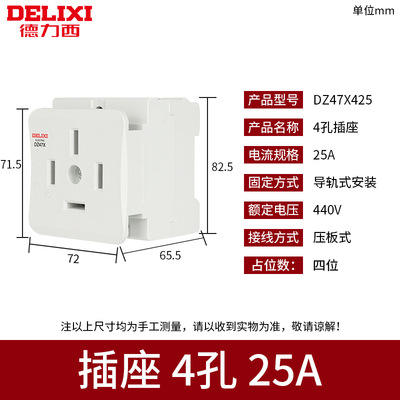 กล่องจ่ายไฟอุตสาหกรรม Delixi แบบโมดูลาร์ รุ่น DZ47X425 AC30 สี่ช่อง 25A แบบเสียบราง DIN