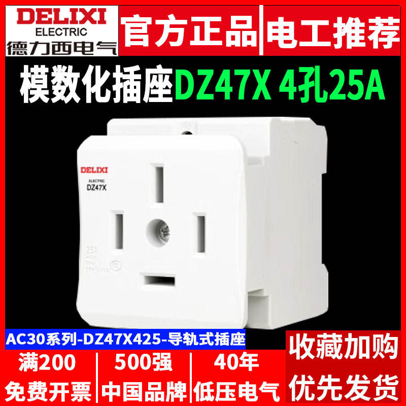 เต้ารับโมดูลาร์ DZ47X, สามเฟส สี่ขั้ว, 25A [สี่รู 25A]